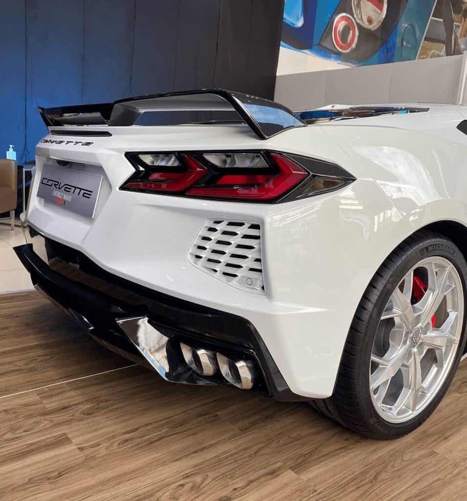 A sleek white Corvette.