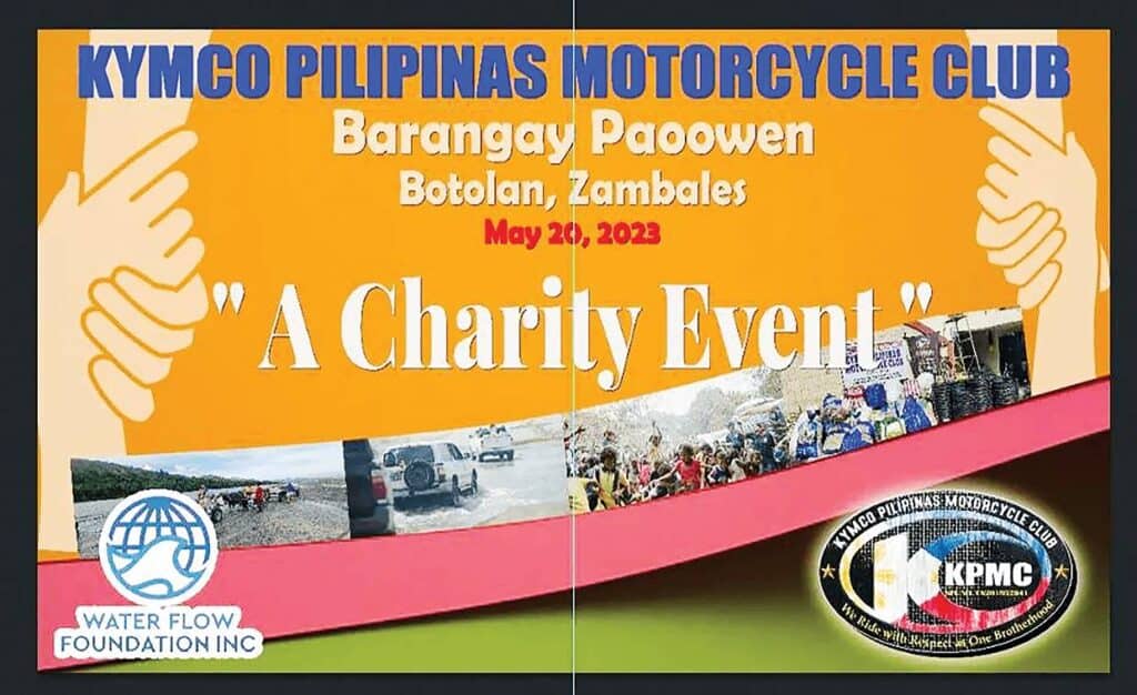 Kymco Pilipinas Motorcycle Club (KPMC) and Water Flow Foundation (WFF) collaborated last May 20 in a charity event held in Baragay Paoowen, Botolan, Zambales to benefit our Aeta brother and sisters.