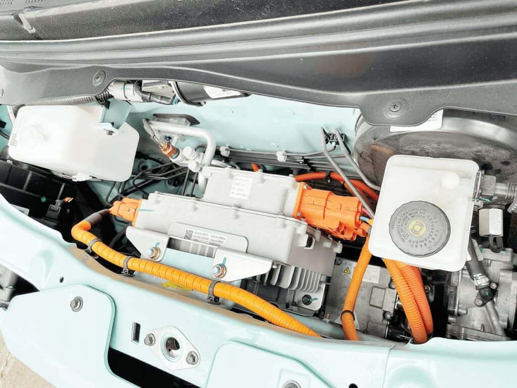 The big interior highlight are the obvious instrument and infotainment screens, on the S model the dual screens are 7-inches and in the L, they are 10.25-inch units with expanded abilities that include 360-degree panoramic cameras supported with rear sonar. Both instrumentations have USB-C ports on the side for charging and data. An additional safety measure on the Pony L, particularly for low-speed city use, is a sound emission, a unique pinging tone, up to 20 km/h, to make the silent car more obvious to pedestrians. Cabin storage is limited to a couple of dashboard hooks, card holder, a net on the passenger side of the dashboard, water bottle holders on the door panels, and a small space beneath the handbrake. The front seats are fairly comfortable though the rear seats are best for small young children, thankfully there are two ISOFIX mounts to accommodate them.