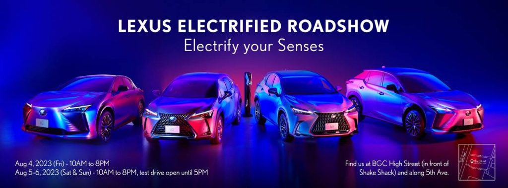 The Lexus Electrified Roadshow is a showcase of the brand’s unique hospitality and the company’s commitment to a greener and more sustainable future. It will take place from August 4 to 6 (Friday to Sunday), 2023 at the Bonifacio High Street Ampitheater (in front of Shake Shack) on 5th Avenue, Bonifacio Global City. The displays and activities will be open from 10am to 8pm for the duration of the event. Test drives will be from 10am to 6pm, with a last call for registration at 5pm.