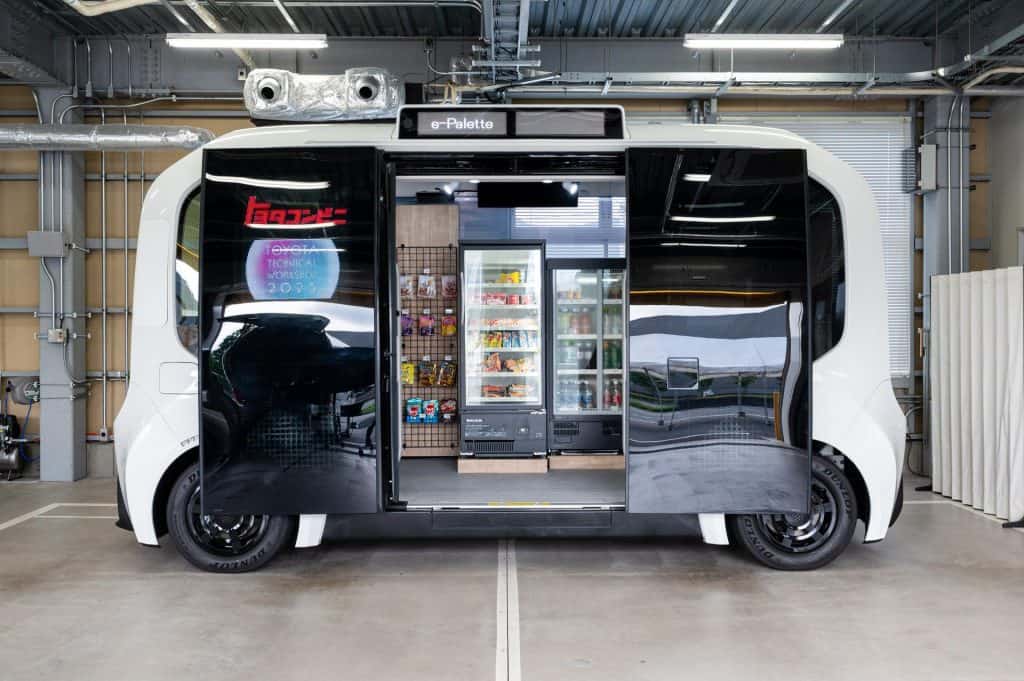 As for the autonomous driving technology, the e-Palette is equipped with a system being developed by Toyota, Woven by Toyota, and Denso.