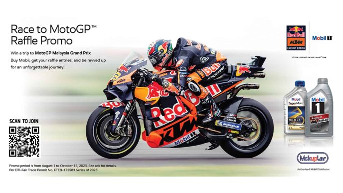 Get ready to rev up your engines and dive into the heart-pounding world of MotoGP with the electrifying “Race to MotoGP with Mobil” promo! From August 1 to October 15, 2023, gear up for a chance to win an all-expenses-paid trip to Malaysia and witness the adrenaline-pumping action of the PETRONAS GRAND PRIX OF MALAYSIA 2023 at the iconic Sepang International Circuit (SIC) on November 12, 2023.