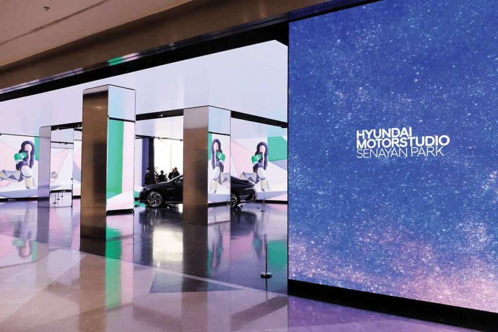 Not as big as the one found in Goyang, which is Korea’s biggest automotive theme park, Hyundai Motorstudio Senayan Park has a different theme as well. Rather than focusing on how its vehicles are made, here, it is a space that showcases the Korean brand’s vision for the future. Visitors are greeted by large LED walls that display media art exploring three central themes: human movement, figurative forms, and emerging technologies.