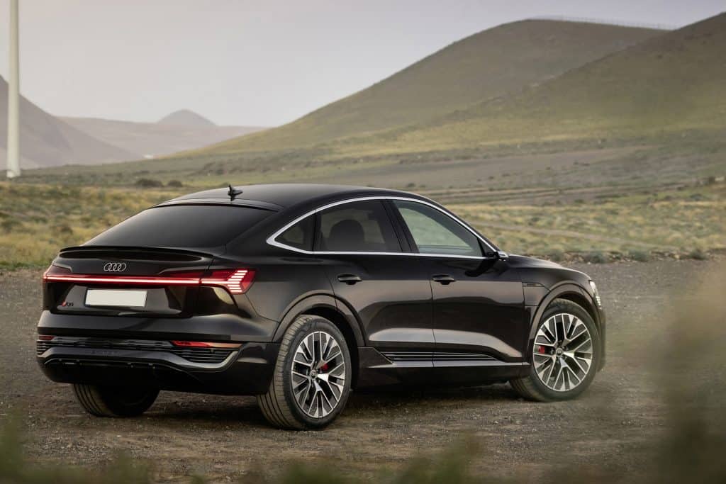 The new Audi Q8 e-tron Sportback, which fuses the practicality of an SUV with the sleek silhouette of a coupe, boasts the same power and torque ratings as the Q8 e-tron 55 SUV. But because of its more aerodynamic shape, the Q8 e-tron Sportback has a longer driving range — it can travel up to 600 km when fully charged.