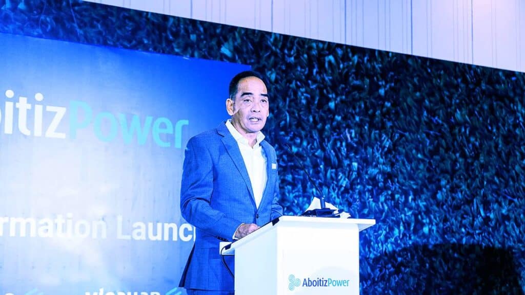 AboitizPower President and CEO Emmanuel ‘Manny’ Rubio delivers a speech.
