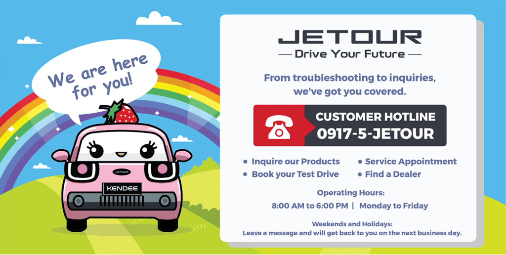 To further enhance its customer-first efforts, Jetour Auto Philippines, the exclusive distributor of Jetour vehicles in the country, has unveiled its new Customer Hotline Assistance service, 0917-5-JETOUR.