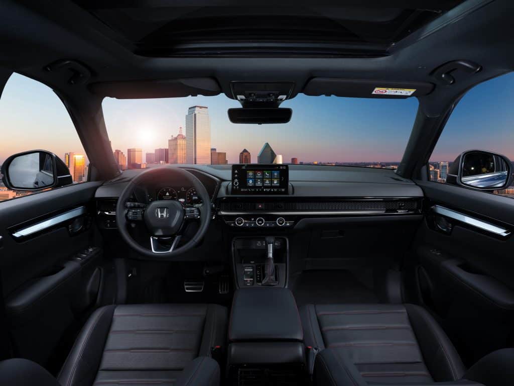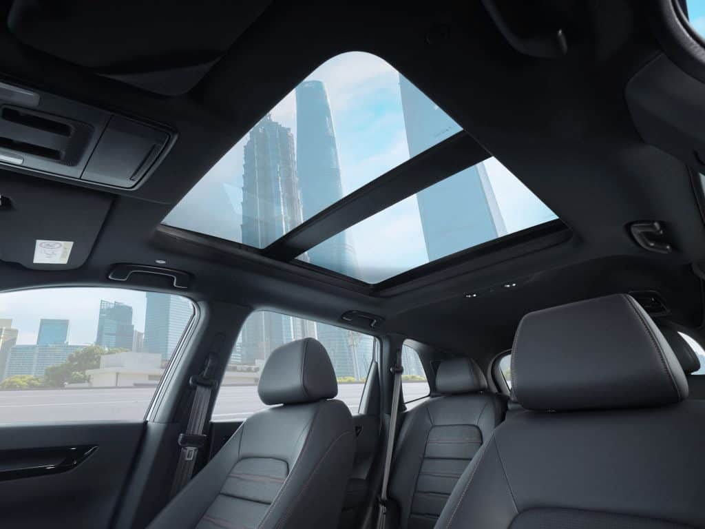 Meanwhile, the CR-V RS e:HEV is distinguished by its red accent stitching on its seats, a panoramic sunroof, aluminum sport pedals, brushed aluminum trim and piano black trim, and a 12-speaker Bose sound system.
