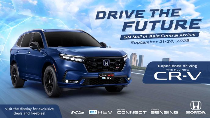 Honda Cars Philippines, Inc. (HCPI) invites interested customers to its “Drive the Future” event that features the recently launched All-New Honda CR-V. Hailed as a significant step in HCPI’s electrification journey, customers are encouraged to check out the vehicle display and experience the All-New CR-V first-hand at the at the SM Mall of Asia on September 21 to 24, 2023.