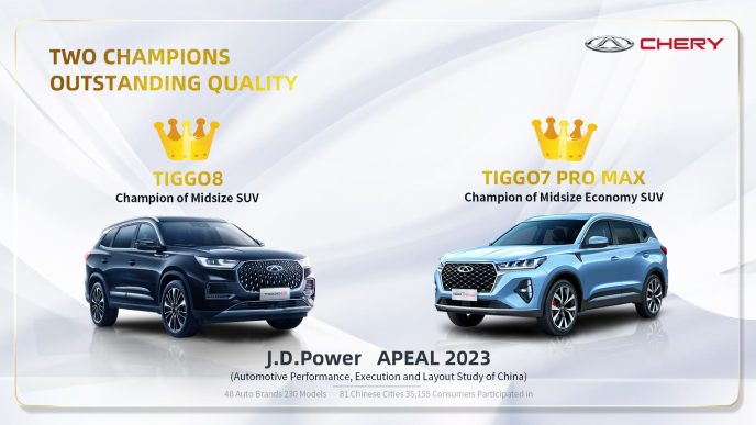 J.D. Power China APEAL Ranks Chery Tiggo 7, Tiggo 8 Series 1st Among SUVs in Respective Segments