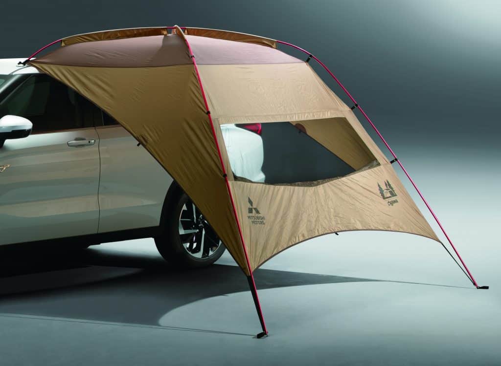 Mitsubishi also partnered up with Ogawa, a Japanese outdoor brand, to let you do more outdoor activities with better comfort. These exclusive accessories include a side tarp tent, two camping chairs with travel case, and a mesh table that’s height adjustable and comes with a carrying bag.