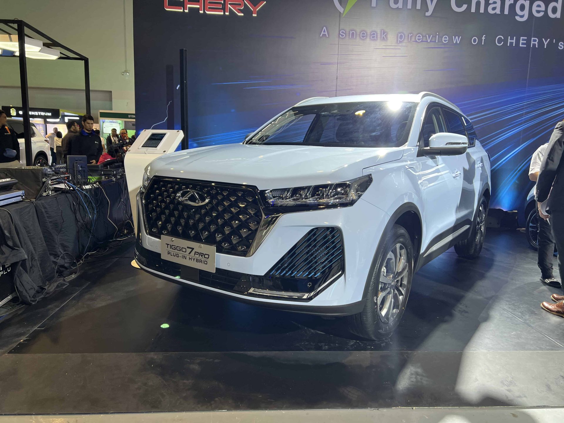 The distinctive Tiggo pro grille is already a familiar sight with the Chery logo that I thought it was just a special trim. Turns out, the vehicle is a PHEV that will slot in under the Tiggo 8 Pro PHEV. It will have dual motors combined with a 1.5-liter turbo engine that in total, will put out 326ps and 545Nm of torque. There will be 3 driving modes with Full EV Mode, Hybrid Mode, and Internal Combustion Engine Mode. And like the name implies, the Tiggo 7 Pro PHEV can be charged via plugging into a wall charger, in addition to engine and regenerative charging.