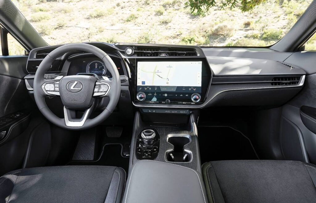 The platform and battery electric drivetrain also open up new freedoms in design. The exterior reinterprets the signature Lexus spindle shape in the vehicle’s body, while the interior is a light and open space that is both simple and luxurious, expressing Lexus Omotenashi hospitality and Takumi craftsmanship.