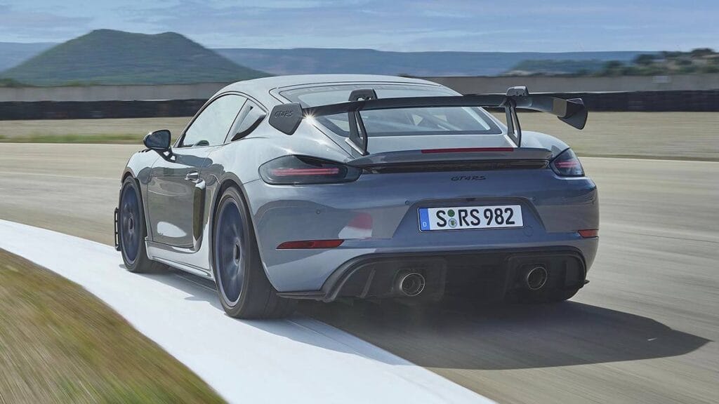 Combined with a ride height that is 30 millimeters lower compared to standard, vents on the front wheel arches, underbody paneling, front and rear diffusers, and side blades, the 718 Cayman GT4 RS generates 25% more downforce than the 718 Cayman GT4.