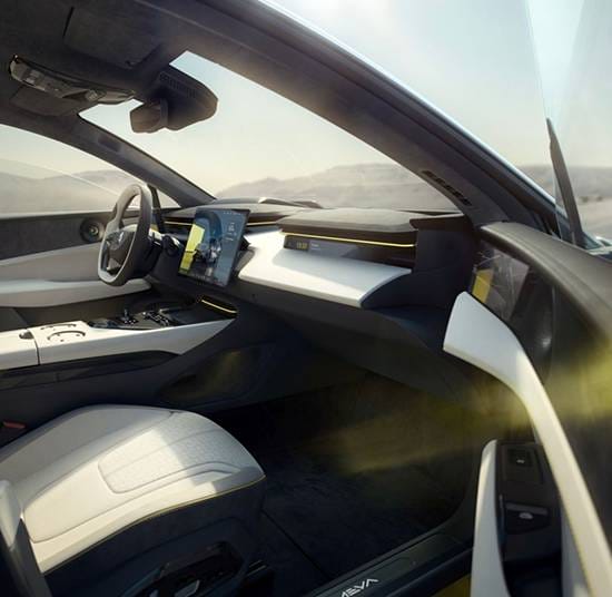 In the interior, a single blade of light runs round the cabin, creating a cocoon of progressive luxury for all occupants. The ultra-thin winglets which flow into the center of the dashboard are a subtle nod to founder Colin Chapman’s famous passion for reducing weight everywhere, while also highlighting the design team’s attention to contemporary craftsmanship.