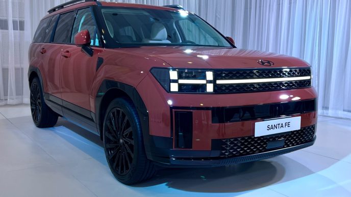 Sizing is 4,830mm long, 1,900mm wide, 1,780mm tall, and has a wheelbase of 2,815mm. All of these put the all-new Santa Fe as larger and wider than a Toyota Fortuner, but still shorter in height.