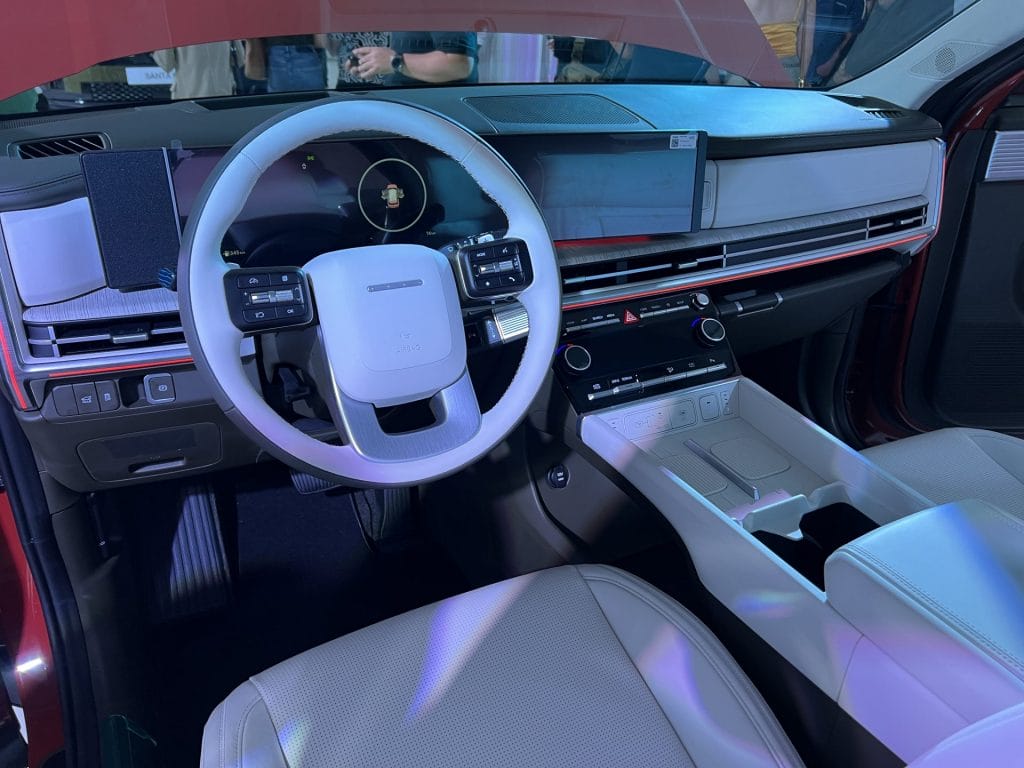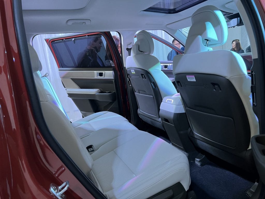 The display units shown sport two different interior themes – one black and one white. Both have segmented panoramic sunroofs, a unified screen for the gauge cluster and infotainment system, twin wireless chargers at the center console, and flat-folding third row seats.