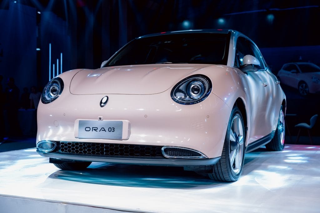Following the “Retro-Modernistic” concept, the ORA 03 combines a retro look with modern features. Round full LED headlamps with round daytime running lights give it a recognizable appearance. Meanwhile, its interior continues with the retro-modern aesthetic with clean surfaces, pastel upholstery, matched with dual displays for the driver’s information screen and infotainment system.