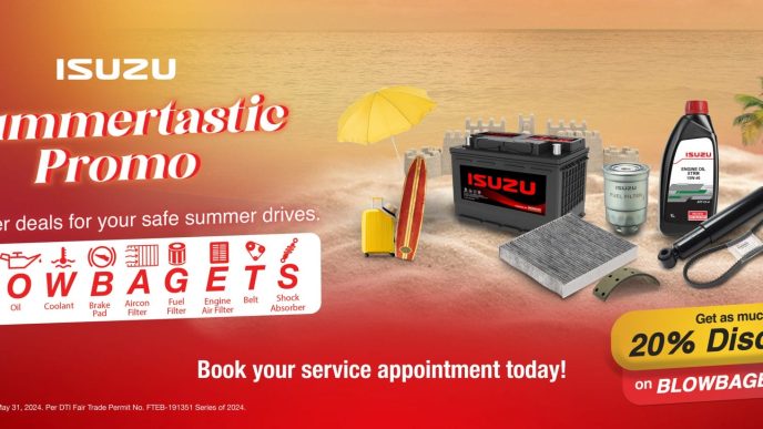In preparation for the summer season, when long drives and adventures are most anticipated, IPC introduces this promotion with the customers’ safety and vehicle performance in mind. The Summertastic Promo includes special discounts on parts critical for vehicle maintenance, famously encapsulated by the mnemonic BLOWBAGETS – representing Battery, Lights, Oil, Water, Brake, Air, Gas, Engine, Tires, and Shock Absorbers. The Isuzu Summertastic promo offers discounts on the following items below: