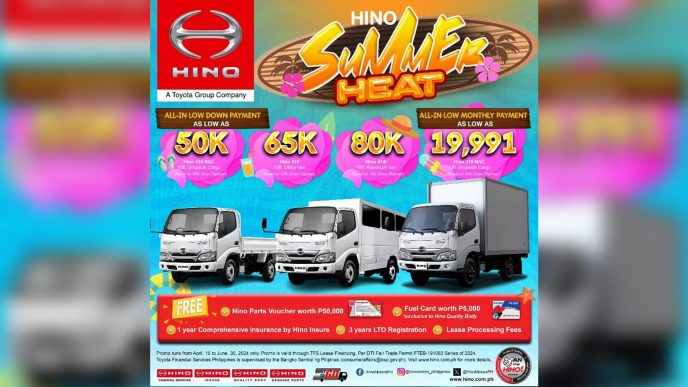 Hino Motors Philippines, a trusted name in commercial vehicles and quality rear truck body products, is thrilled to bring you the Hino SuMmEr Heat Promo that runs from April 15 to June 30, 2024. This special offer aims to provide today’s enterprising individuals with an incredible opportunity that will help them get started with their business or grow their existing ventures further.