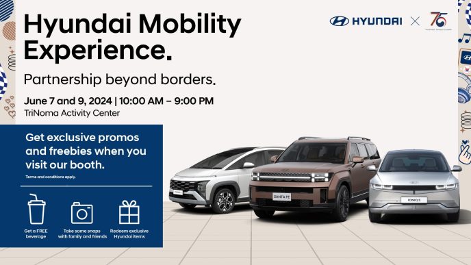 Hyundai Motor Philippines, Inc. (HMPH) continues its celebration of “Partnership Beyond Borders”, commemorating the 75th anniversary of diplomatic ties between the Philippines and South Korea. The second stop of this special Hyundai Mobility Experience (HME) tour will be held at the TriNoma Activity Center, Quezon City from June 7 to 9, 2024.