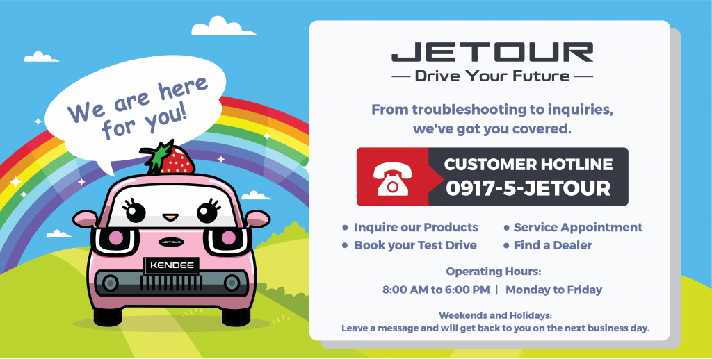 To make its parts even more accessible to customers, JAPI has activated its Customer Hotline Assistance service 0917-5-JETOUR, available from 8:00 a.m. to 6:00 p.m., Mondays to Fridays.