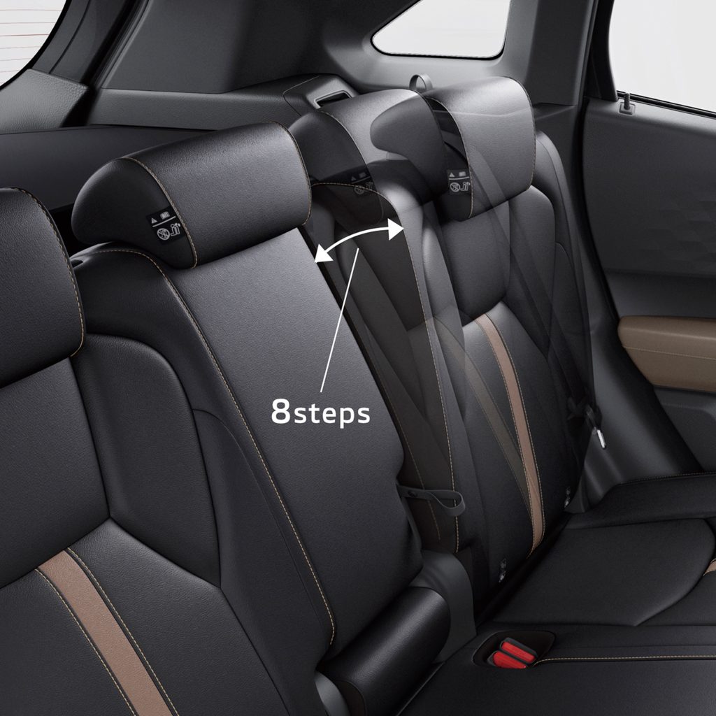 Both front and rear seats of the XFORCE’s are ergonomically crafted to provide optimal support for both driver and passengers, with the rear seats having an 8-step recline function. For GT variant, the seats are in comfortable synthetic leather with Heat Guard (Black with Brown Trim) while the GLS variant has black and gray fabric seats. The XFORCE provides ample legroom for all its passengers.