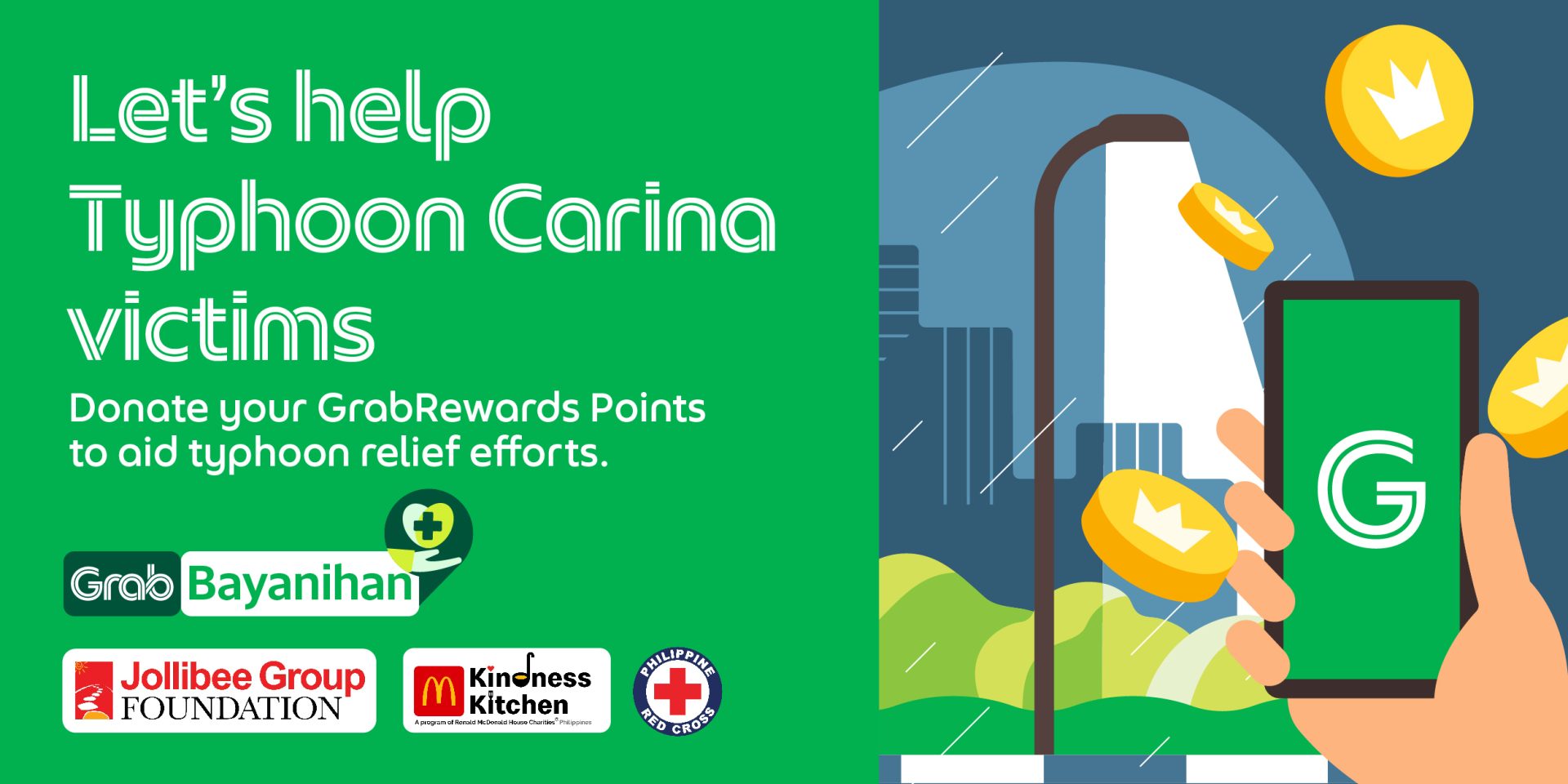 Grab users, especially those subscribed to GrabUnlimited, accumulate points with each transaction made on the Grab platform. These points can be redeemed for rewards listed in the Grab Rewards Catalogue. In a move to facilitate aid for victims of Typhoon Carina, Grab Philippines has reduced the points required for donations towards the typhoon response efforts of the Philippines Red Cross, Jollibee Group Foundation, and McDonald’s Kindness Kitchen.