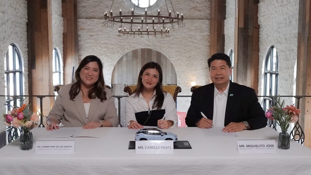 Camille officially became part of the JETOUR Auto Philippines family with her contract signing at Oro Plato in Taguig City, and she also officially became an owner of a JETOUR Dashing Lightning i-DM, also known as the Dashing PHEV. The formal signing was witnessed by JAPI Managing Director Miguelito Jose and Marketing Director Cherry May De Los Santos.