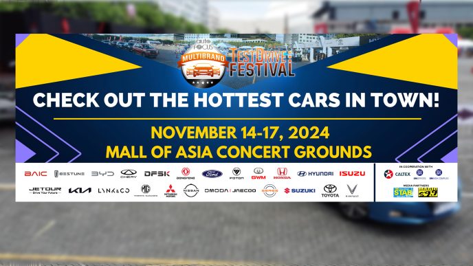 In cooperation with Caltex and SM, as well as media partners The Philippine Star and Magic 89.9, the 2024 Auto Focus Pre-Christmas Test Drive Festival will be held from November 14 to 17 at Block 16 and 20 of the SM Mall of Asia Open Grounds in Pasay City.