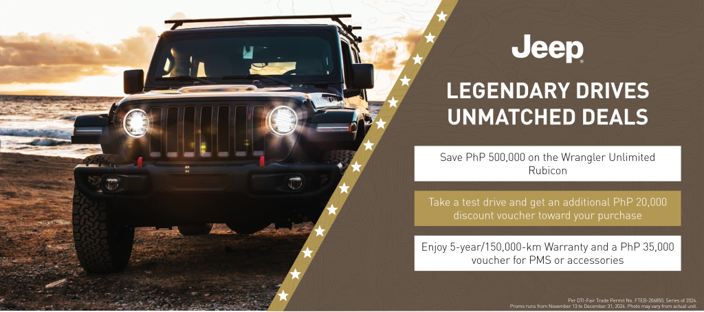 - MY2023 Wrangler 2.0L Unlimited Rubicon – PhP 500,000 off