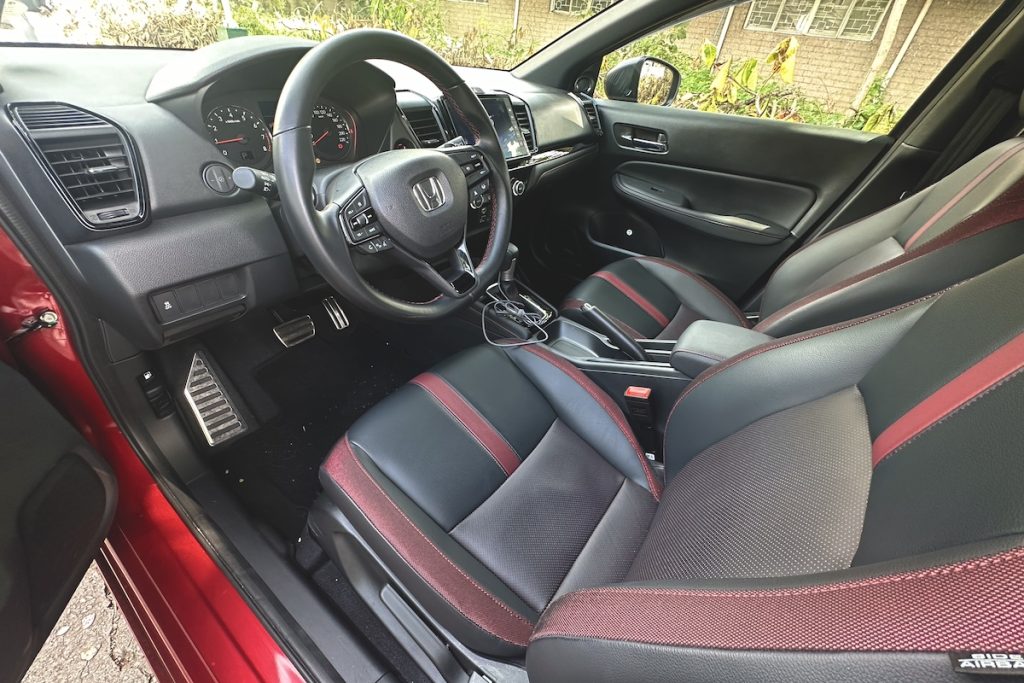 Topping off the visual upgrade is the Sonic Grey Pearl paint option, borrowed from the Honda Civic Type R FK8, lending a modern, sophisticated edge, though the red tester that I drove come with Modulo kits that customers can purchase right off the showroom. These design tweaks are more than just cosmetic; they improve the car’s road presence without compromising its practical dimensions. They add more pizzazz to the already sporty demeanor of the City Hatchback, though admittedly, you’ll enjoy the car even without these added kits.