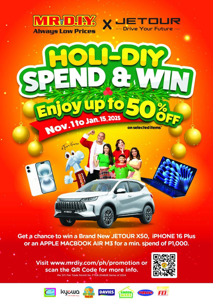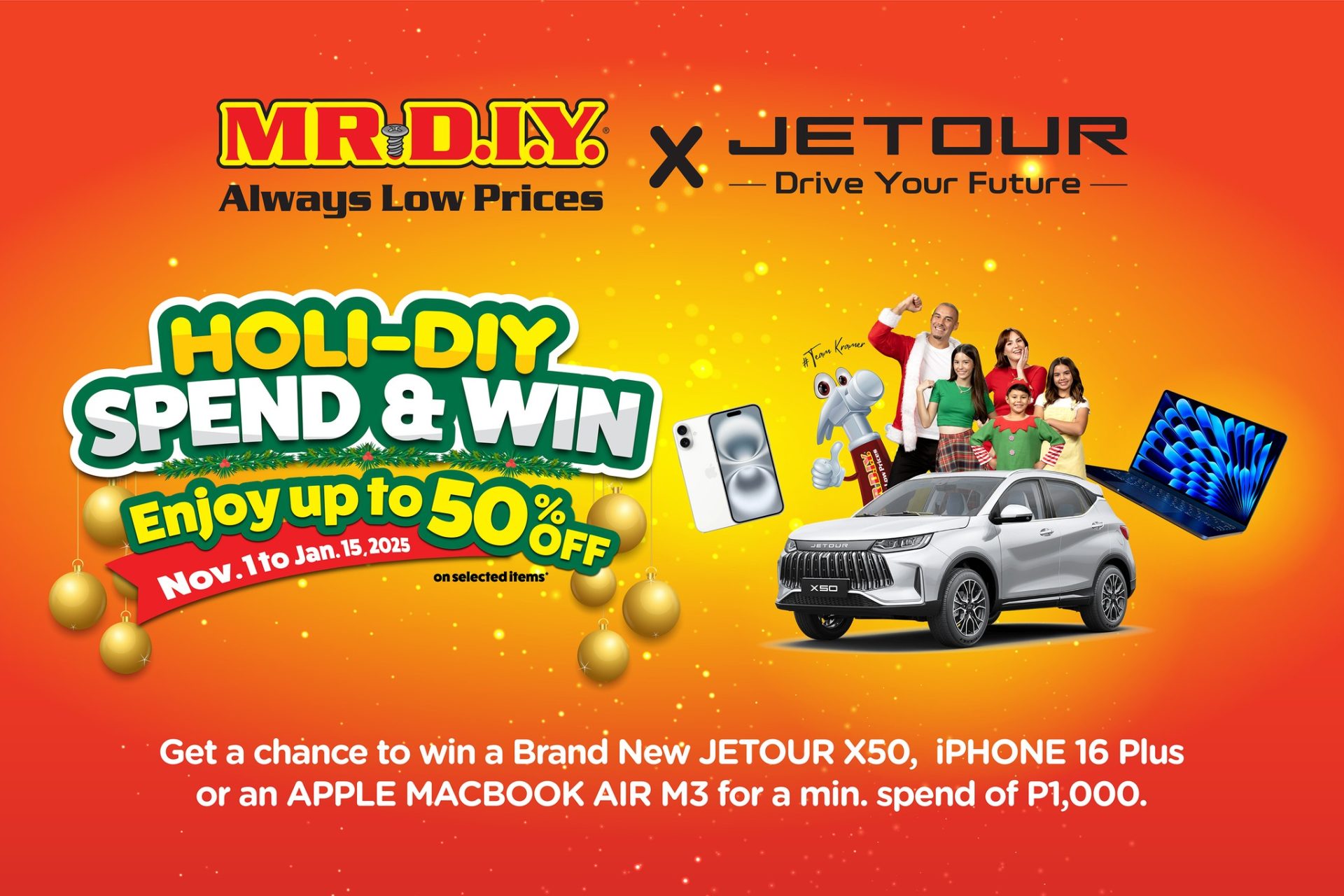 This time around, the JETOUR and MR D.I.Y. brands have collaborated for the “Holi-DIY Spend & Win” raffle promo. Under this ongoing promotion, any customer who spends a minimum of P1,000 in any MR D.I.Y. store nationwide is eligible to win exciting items, including the grand prize, a JETOUR X50 Sport compact crossover.