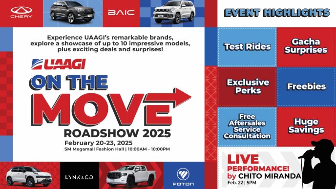 UAAGI On The Move is designed to streamline the car buying journey for Filipinos, bringing the best vehicles, the best promos, and event-exclusive deals together in a convenient, one-stop-shop format. This initiative underscores UAAGI’s dedication to empowering Filipino car buyers by providing them with a wide selection of quality vehicles and making the entire process as easy and accessible as possible. Don’t miss the first leg of the UAAGI On The Move Roadshow Tour at the Fashion Hall of SM Megamall from February 20-23, 2025.