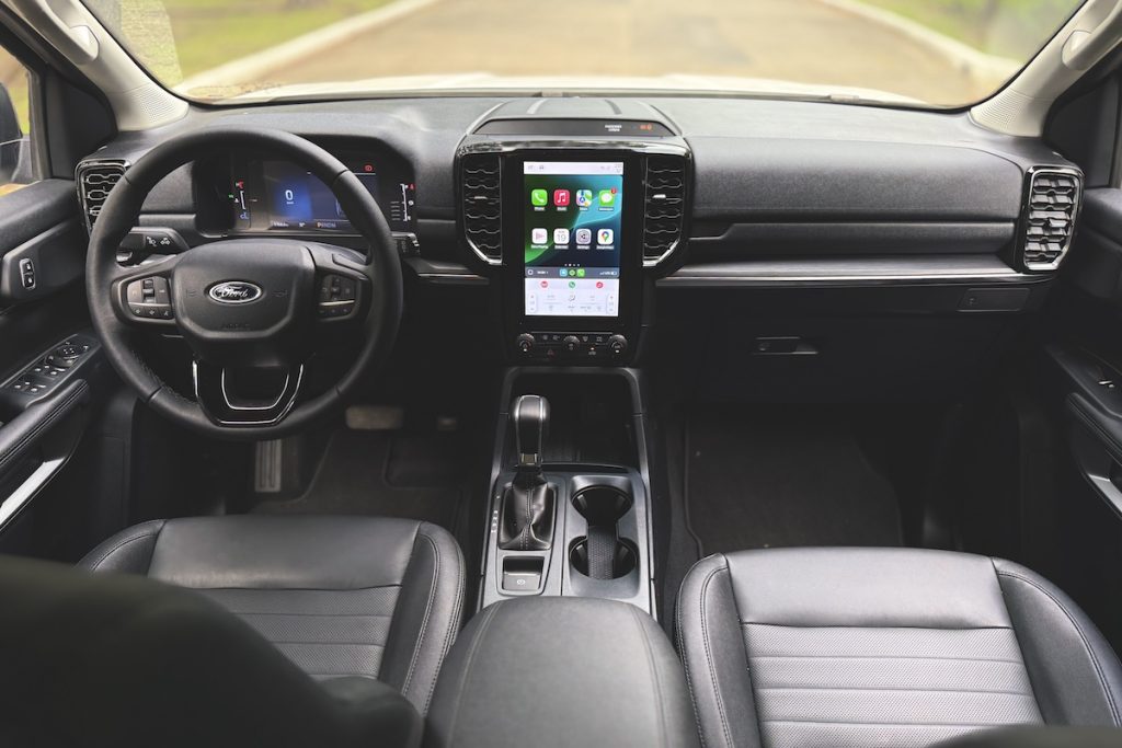 The Ford Everest Sport lives up to its name with an aggressive, blacked-out exterior. The grille, badging, and trim are all finished in black, lending it a stealthy yet premium appearance. While the Sport-exclusive Lightning Blue color is a head-turner, the black-and-white tester that I drover offers a sophisticated contrast (read: basic) that many, like myself, will appreciate.