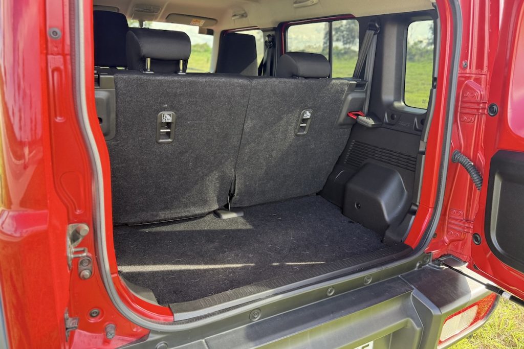 This is, hands down, the most practical Jimny ever. While rear seat legroom is only marginally better than in the 3-door, the real win is behind the second row. You finally get a cargo hold that’s not laughably shallow. I could throw in bags, gear, groceries, even a folding bike without resorting to creative Tetris.