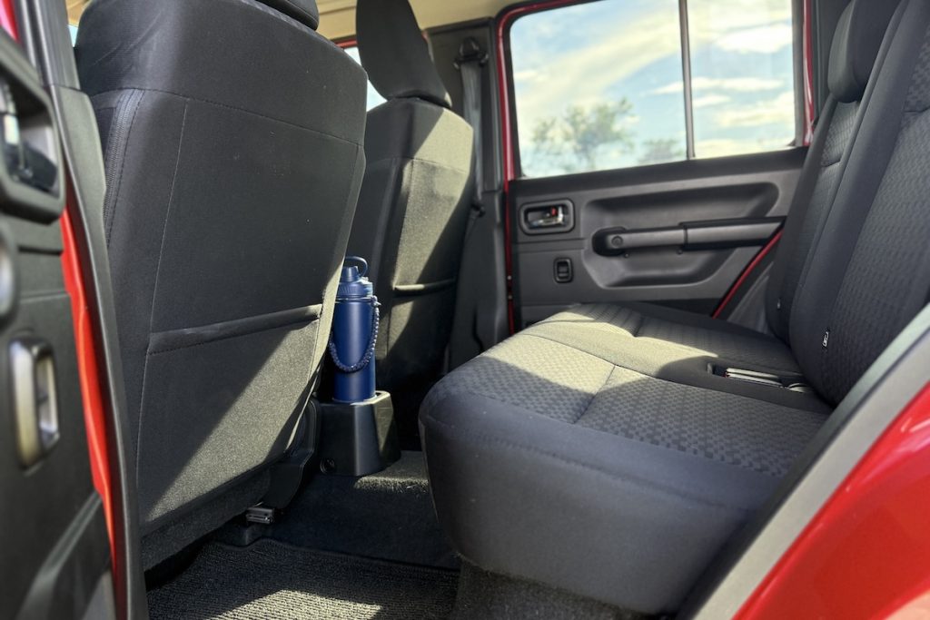 The interior is barebones and proud of it. No soft-touch panels, no plush trim – just honest, rugged materials that you don’t have to baby. Got mud on the door panel? Who cares. The cabin feels like it was built to take a beating, and that’s exactly what I appreciated when you want to put kilometers in on the daily (and a few off-roading escapades).
