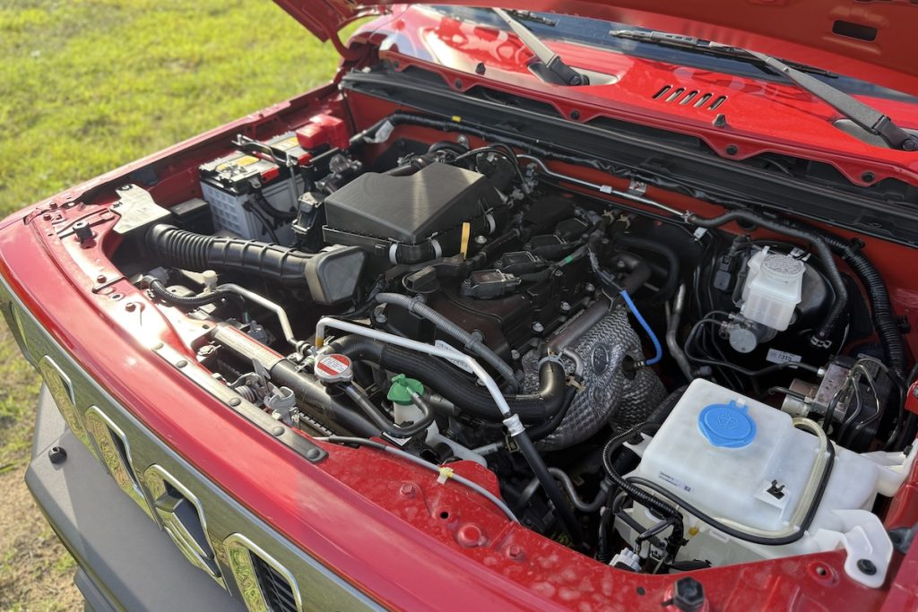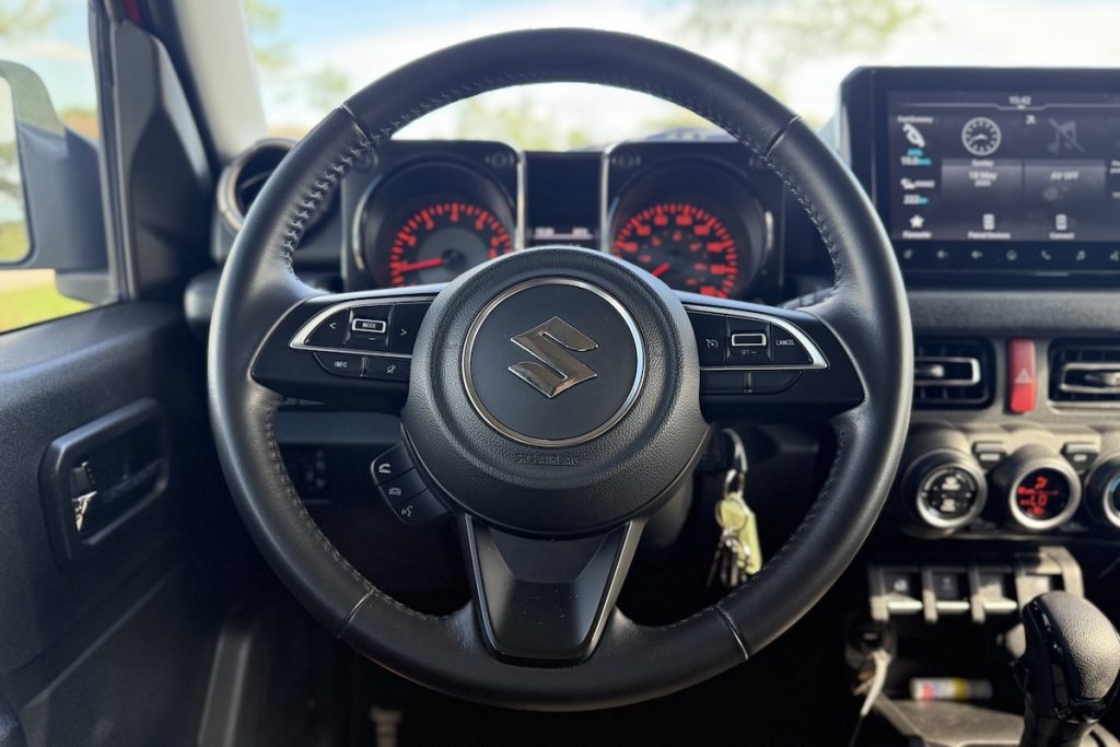 Let’s talk about on-road manners. The Jimny 5-door weighs about 95 kg more than the 3-door – roughly the weight of an adult on the heavy side – but the 1.5L naturally aspirated engine holds up fine. It’s not fast, nor does it pretend to be, but it gets up to highway speed with enough patience and audible grunt.