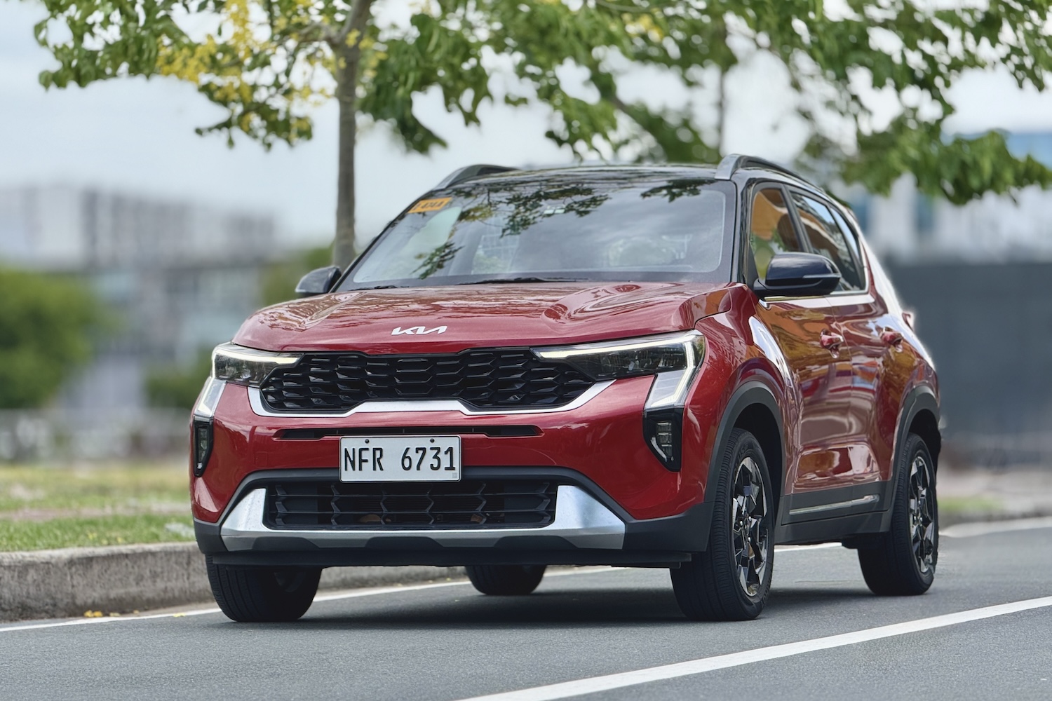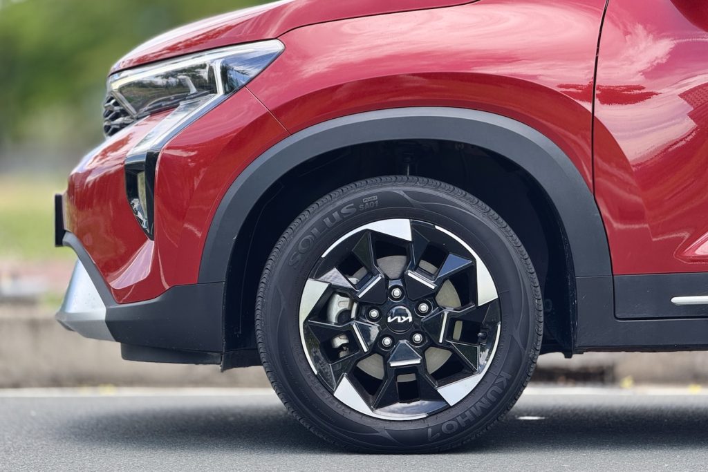 At the rear, it mimics the larger Seltos with a sleek tailgate, vertical elements, and a surprisingly sporty roof spoiler with LED stop lamp. The SX variant I drove came in a Pewter Olive paint job that looked more expensive than it should – a rare compliment for a sub-P1.1M car. And those 16-inch alloys? Tasteful, not tacky.