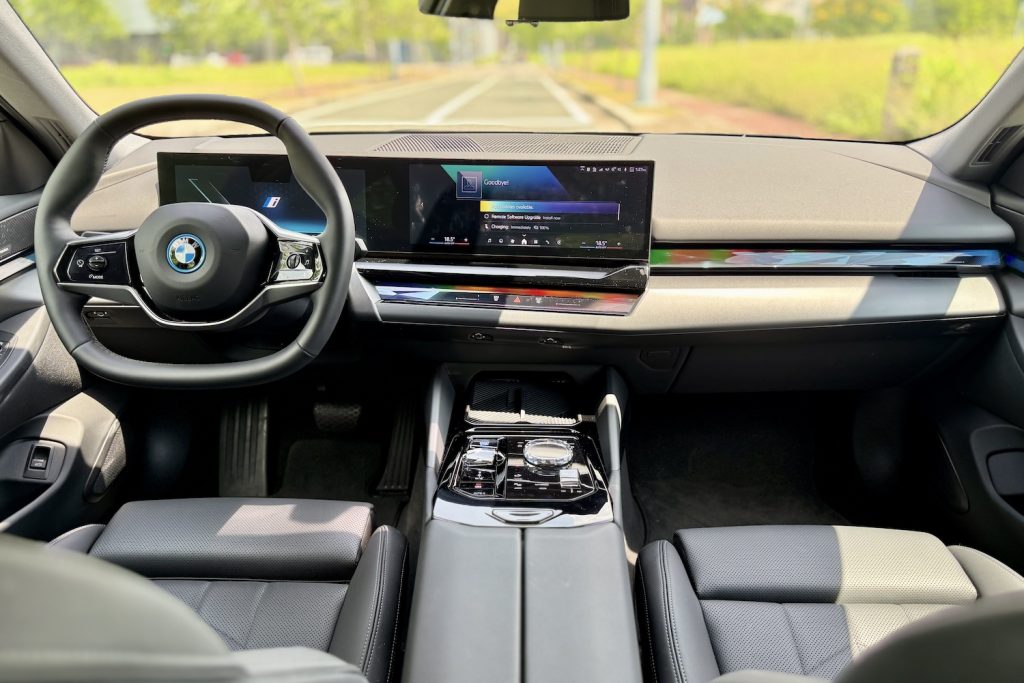 Let’s start with the looks. BMW kept it smart and conservative. The i5 shares the same G60 body as its combustion sibling, with only subtle cues – like the blue trim and the “i” badging – to remind you it runs on electrons. The kidney grilles are large and but tastefully done (a sentence I haven’t been able to write about most modern BMWs), and the proportions are clean and grown-up.