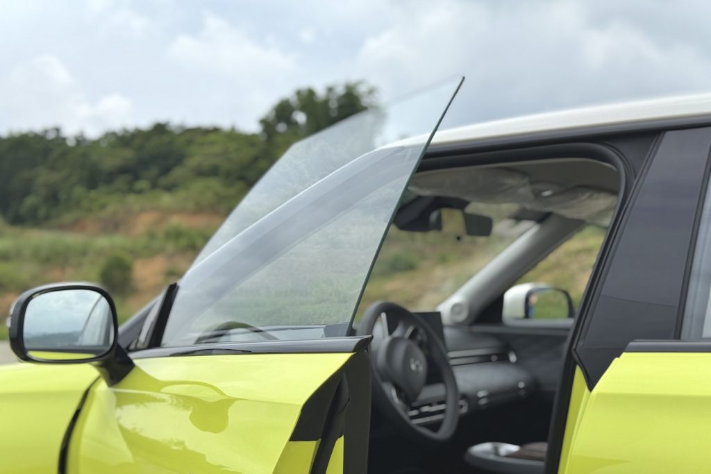The Nammi leans into the small-and-charming formula, and it works. It’s compact at just 4,030 mm long, shorter than a Toyota Vios, but because of the wide body (1,810 mm) and frameless windows, it doesn’t look or feel like a toy car. The 17-inch wheels and hidden door handles give it a modern EV vibe. Meanwhile, visibility is surprisingly good. The wide windshield and large side windows make it easy to see out of, which adds a lot of confidence when driving through tight roads.