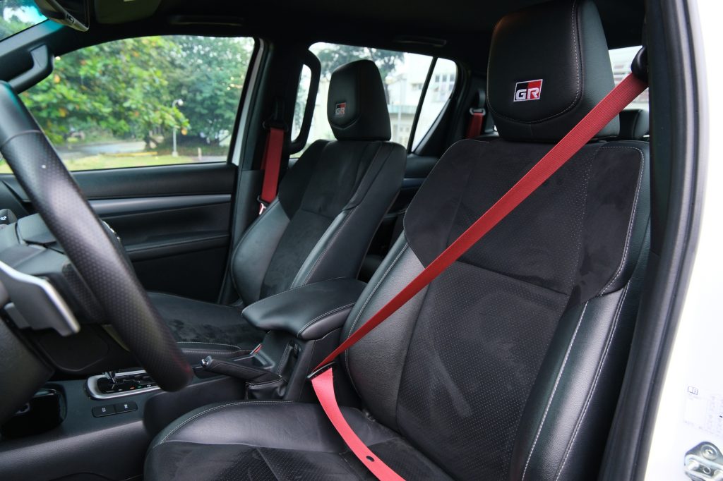 The cabin also gets instant style points too. Red seatbelts are always cool and were also put in the second row. The seats are also very racing-inspired with its leather/suede combination, GR badges on the headrests and steering wheel, while there are padded materials on the touch points in front of the cabin. There’s also faux carbon fiber trims on the door panels and dashboard that blends everything together.