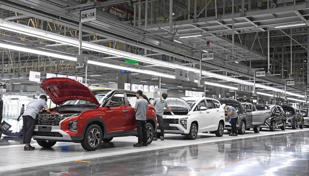Mainly, the Hyundai Motor Manufacturing Indonesia plant produces the company’s strategic models for Southeast Asia, namely the Creta, the Santa Fe, and the Stargazer, including the new Stargazer X model that was unveiled at GIIAS. We navigated through the gargantuan complex by bus, going through some buildings for an impressive introduction to the facility and a vivid demo of their exemplary safety and sustainability practices (the plant instills proactive environment-friendliness by utilizing solar panels to supply a significant part of its electricity needs, and uses only water-based paints in its painting process), then we were eventually brought to the main plant.