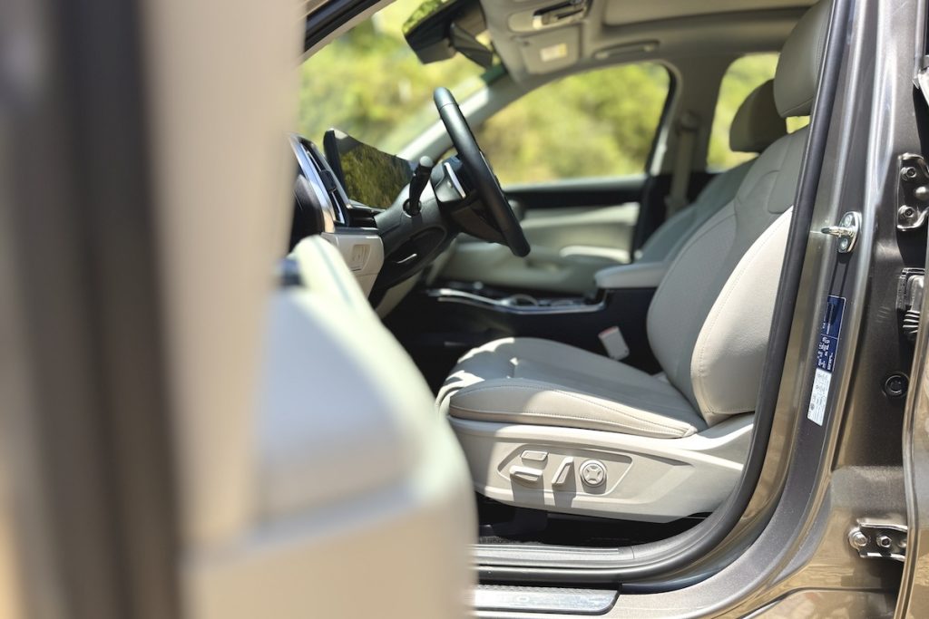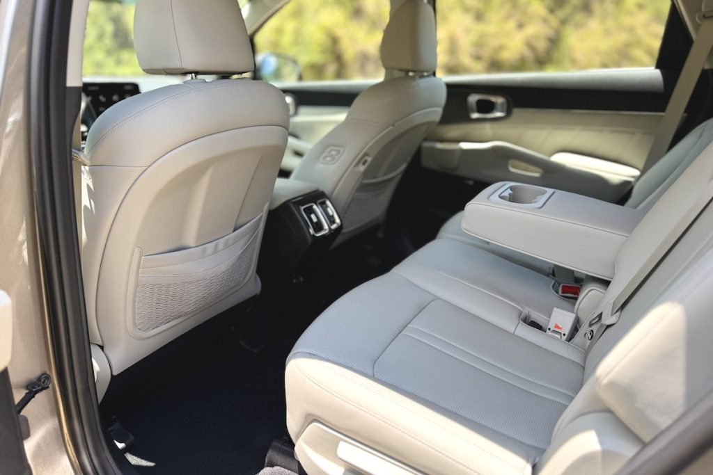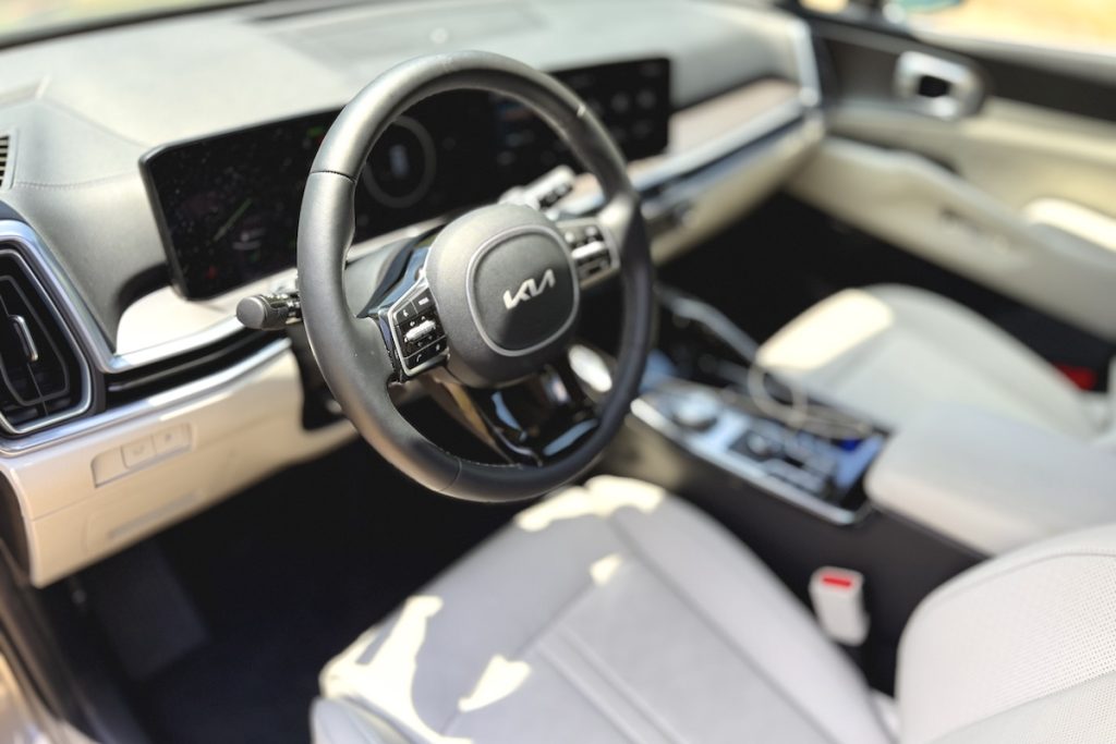 The Sorento’s interior feels like it was designed by someone who has taste and is tech-savvy. The high-rise center console gives it a cockpit-like vibe, and the rotary shifter, while unconventional, is intuitive enough after a few hours behind the wheel. Materials feel upscale across the board. Our unit had white leather upholstery – a pleasure to look at, but you’ll think twice before letting your kids climb in with ice cream cones.