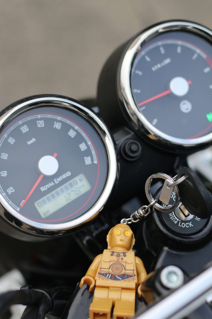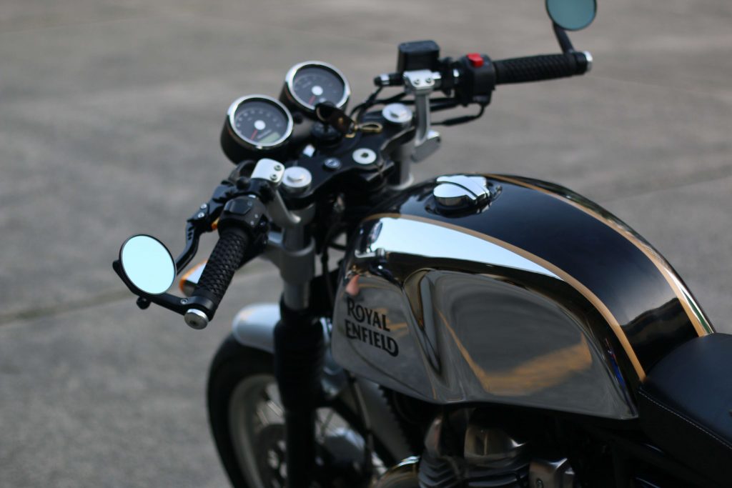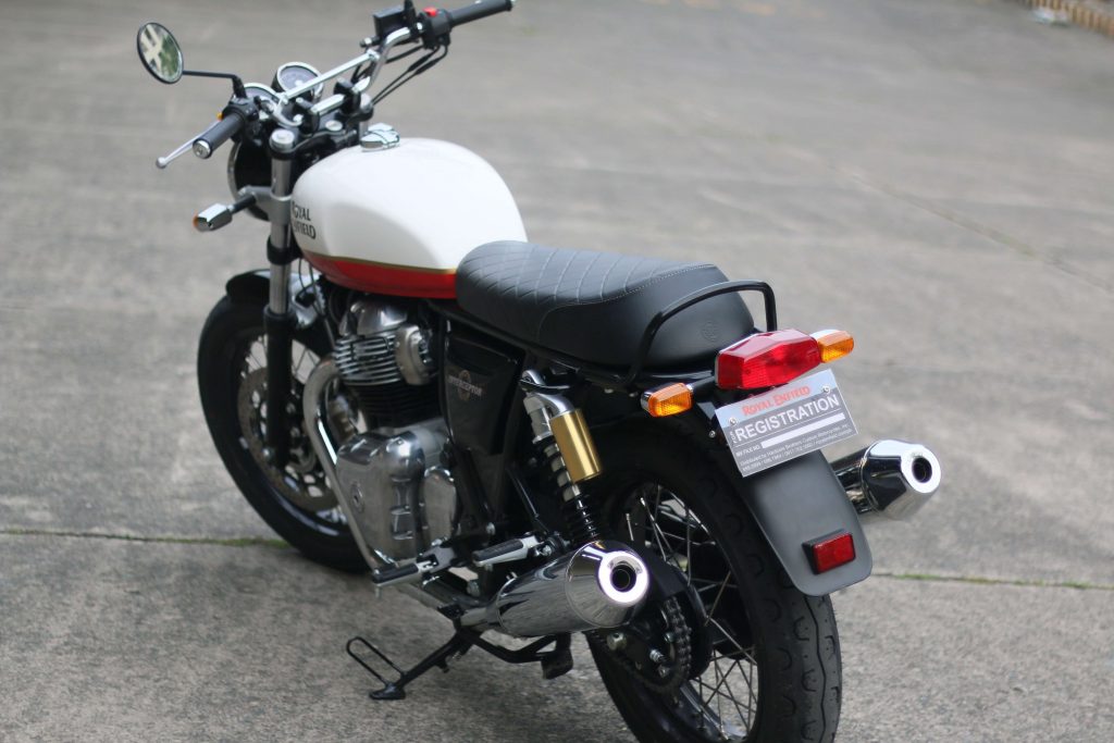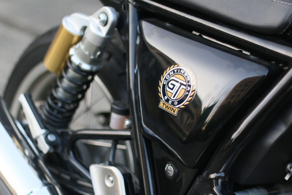 On paper, the Interceptor ( a “standard” motorcycle) and the Continental GT (a “café racer”), share the same drivetrain and chassis. The specs don’t scream “POWER!” (which is what most gearheads prioritize). The oil- and air-cooled, 649cc parallel-twin engine churns out a modest 47hp at 7,250rpm and 52Nm of torque at 5,250rpm.