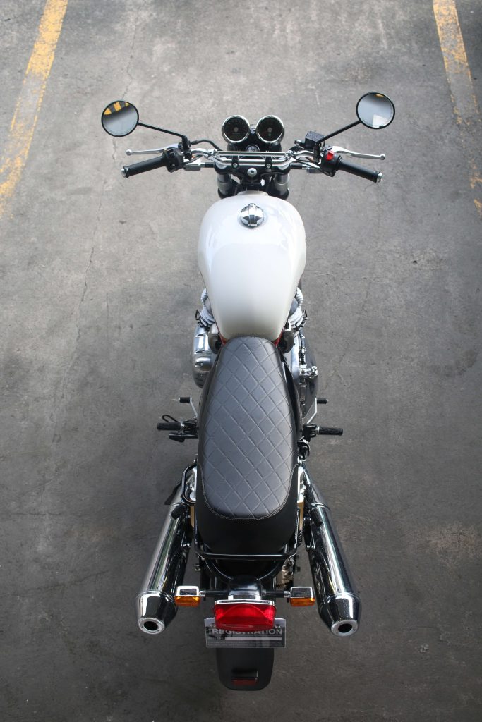 I was having coffee and getting some work done at Caferista – a hip motorcycle café in Brixton, Mandaluyong – when I spied another rider on a Continental GT 650 come in for his morning brew. I couldn’t help myself, so I stepped outside and surreptitiously took pictures of his bike, admiring the chrome tank and accents of his “Mister Clean.” Then I straight up approached its owner and asked him, “So how do you like your bike?” “I really like it! How do you like yours?” he asked. Just like him, I had taken delivery of my bike just several months prior. In my case, I had opted for the Interceptor 650, the “standard” version of the bike.