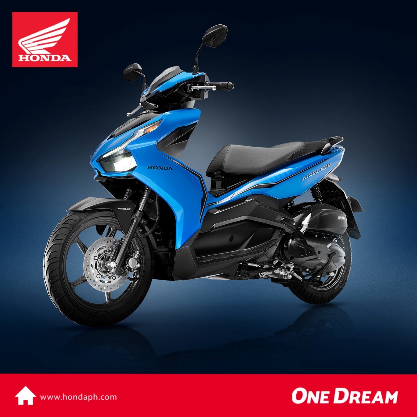 All these essentials are found in The All-New AirBlade150. This stylish motorcycle boasts of its powerful 150cc SOHC liquid-cooled engine for prime acceleration superiority in stop-and-go situations.