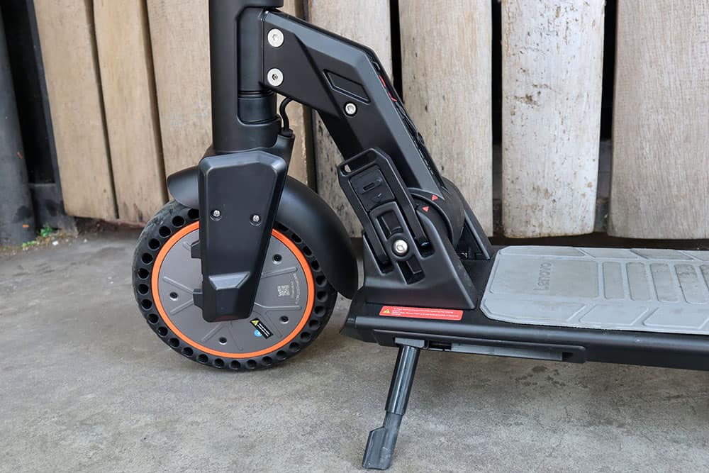 The scooter’s magnesium and aluminum alloy-made frame feels pretty sturdy and offers stronger impact resistance for user safety. While it’s a bit heavy to haul and carry around, it’s stable enough to support a load of up to 120kg.