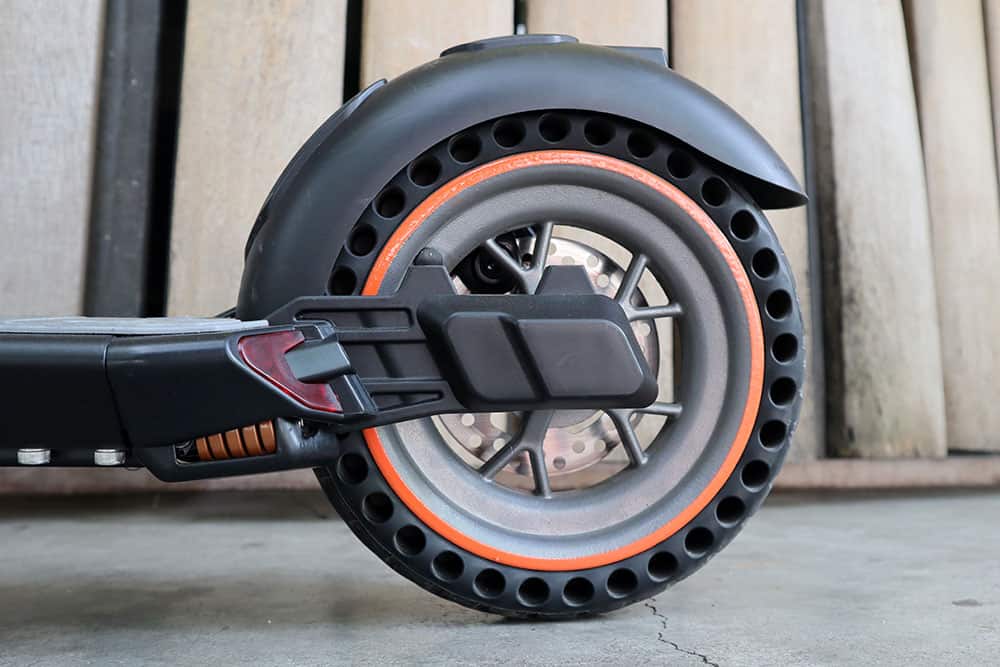 The M2 comes with a grey rubber foot mat and grips, along with 8.5-inch wheels and honeycomb tires, which add a bit of a rugged feel.