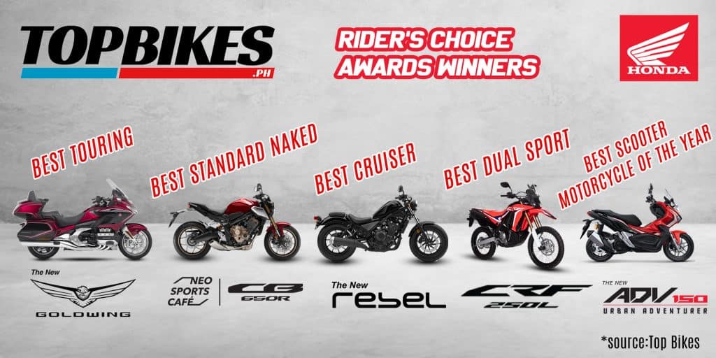 In its first-ever Rider’s Choice Awards 2020, Top Bikes Philippines, a premier destination for motorcycle lovers, asked motorcycle fans to vote for their favorite models per segment via their website.