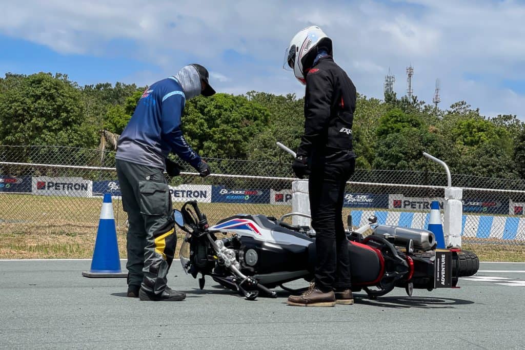 In the emergency braking exercise, they wanted us to go full throttle towards coach Toto and brake hard on his signal. It was relatively easy, considering that the bikes we used were equipped with ABS and disc brakes on both wheels. Make no mistake, though; one of the participants that day still dropped his bike, probably out of nervousness.